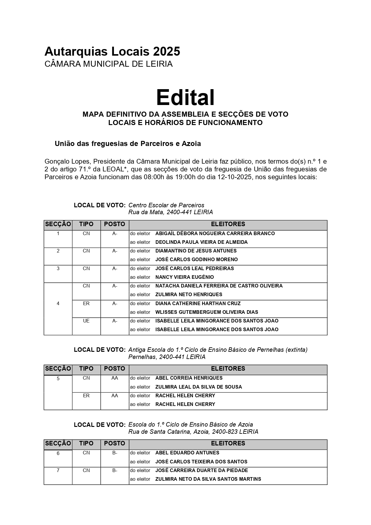Deste modo, apelamos à sua regular visita e aos contributos que nos queiram dar para nos ajudar na administração desta autarquia, que se quer aberta e dialogante, estreitando a relação entre eleitos e eleitores, num ato de plena cidadania e participação ativa e cívica no desenvolvimento da Freguesia de Parceiros e Azoia.