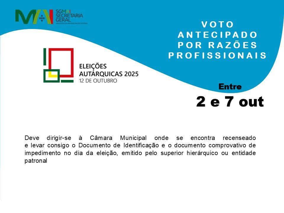 Pode votar antecipadamente entre 2 e 7 de outubro!